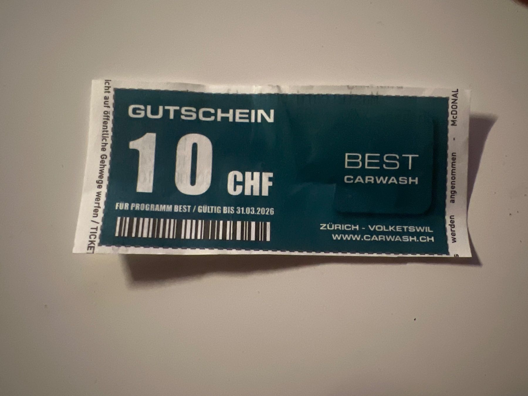 Best Carwash Gutschein für 10 CHF gültig bis 31 03 2026 (Neu (gemäss