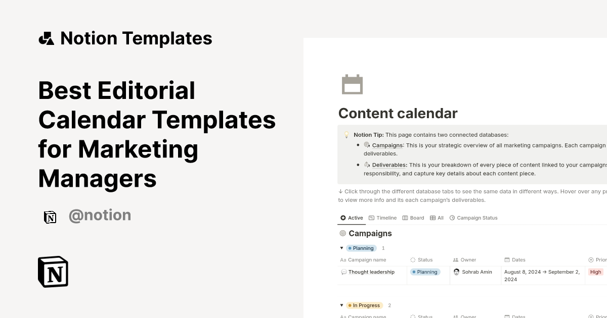 Best Editorial Calendar Templates for Marketing Managers Notion