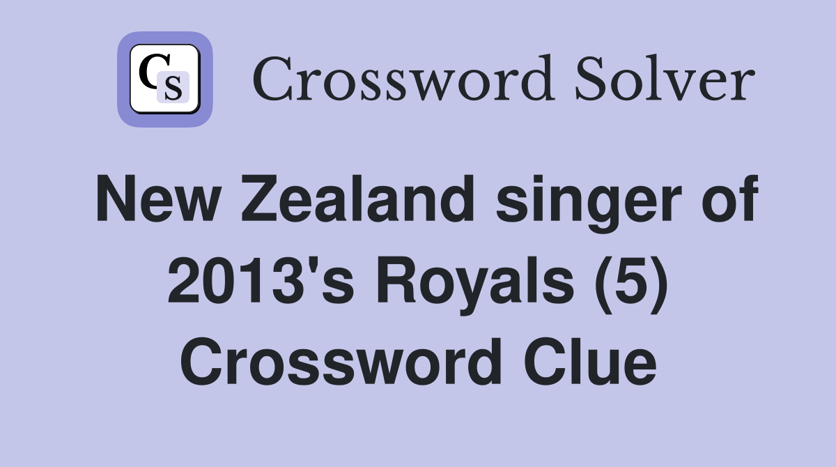 New Zealand singer of 2013 #39 s Royals (5) Crossword Clue Answers