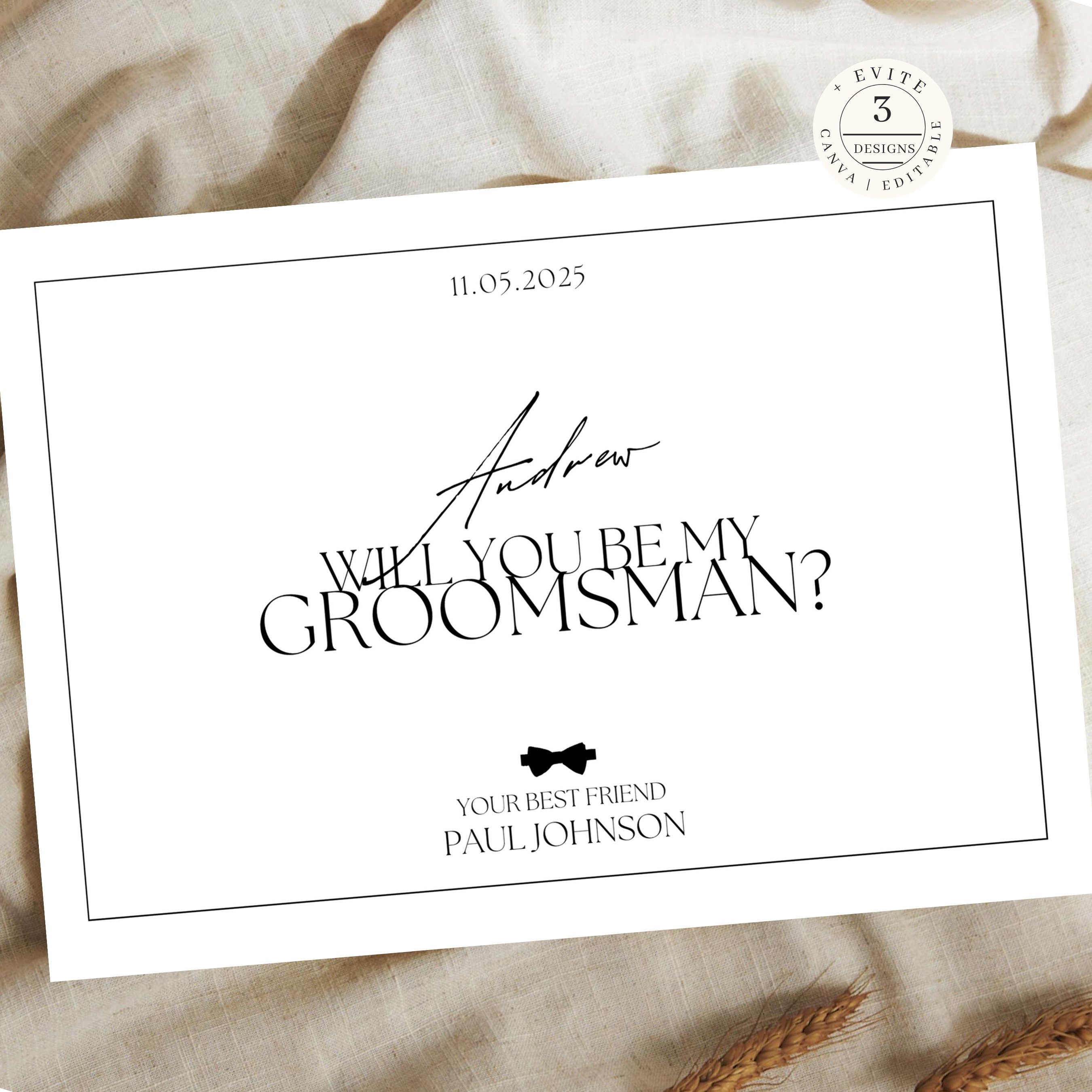 Editable Groomsmen Proposal Card Will You Be My Best Man Template