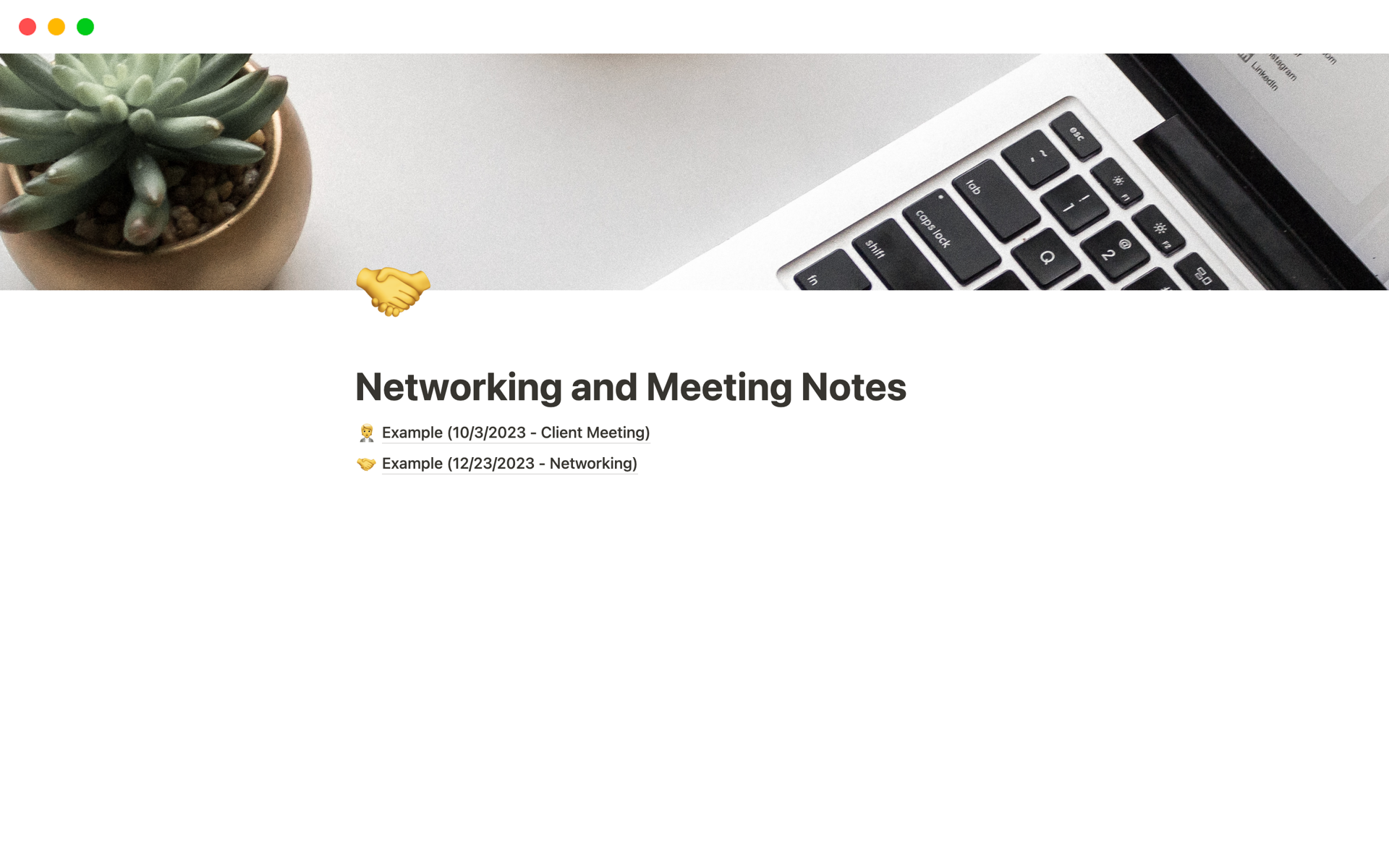Networking and Meeting Notes Notion (ノーション)テンプレート