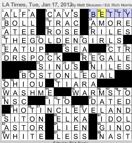 L A Times Crossword Corner: Tuesday January 17 2012 Matt Skoczen