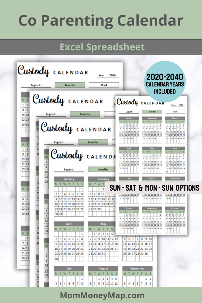 Co Parenting Calendar Excel Spreadsheet Green Mom Money Map