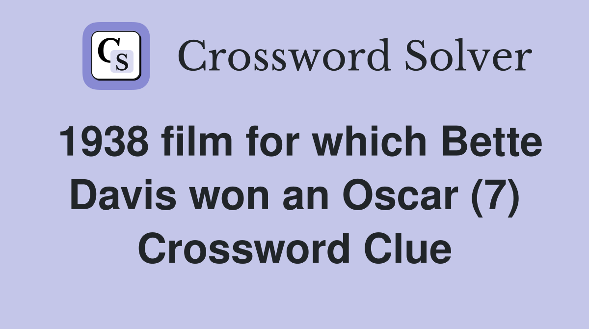 1938 film for which Bette Davis won an Oscar (7) Crossword Clue