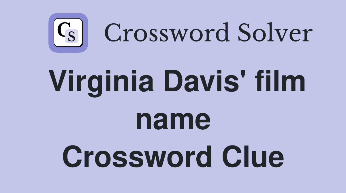 Virginia Davis film name Crossword Clue Answers Crossword Solver