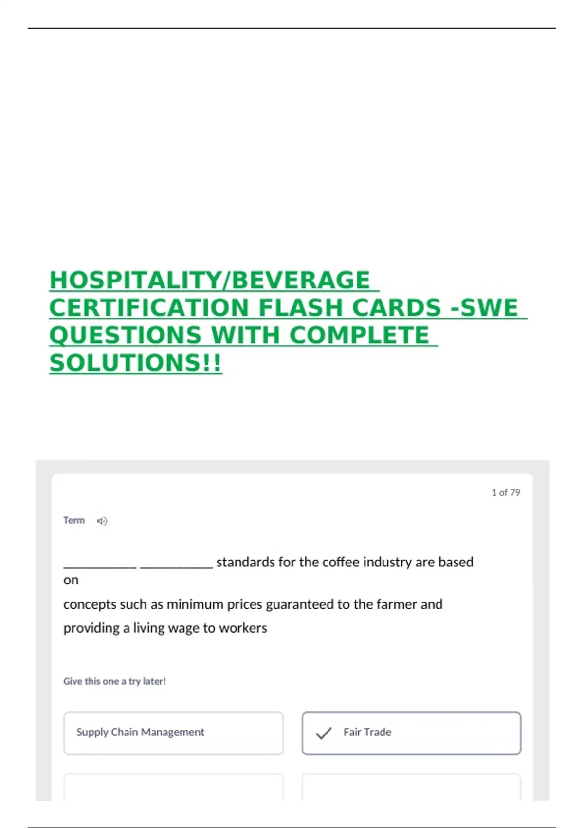 HOSPITALITY/BEVERAGE CERTIFICATION FLASH CARDS SWE QUESTIONS WITH
