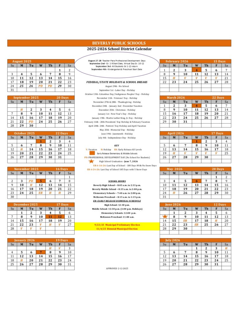 Beverly Public Schools ma Calendar 25 26 Revised pdf EduCounty