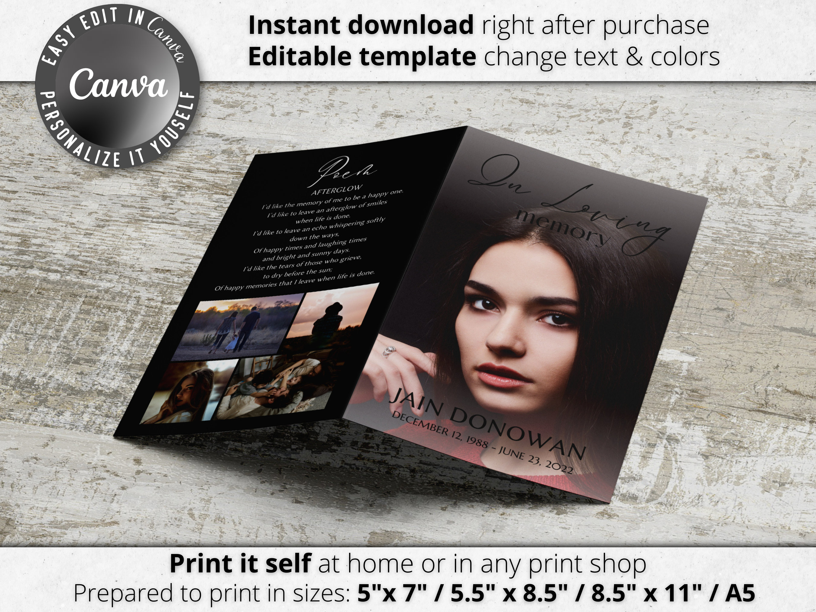 In Loving Memory Funeral Bi fold Booklet Template to Self Etsy