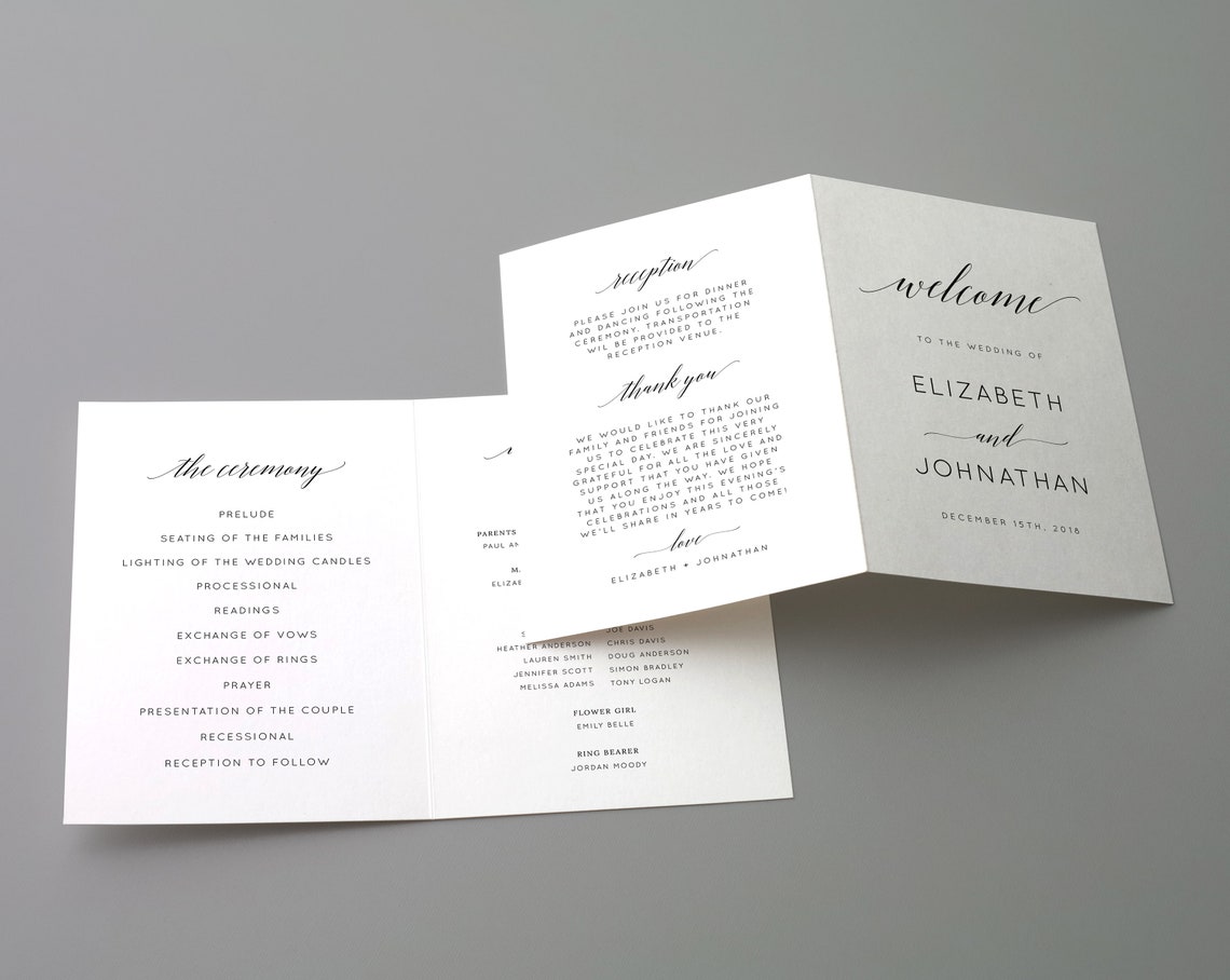 Minimalist Bi fold Wedding Program Template Printable Folded Wedding