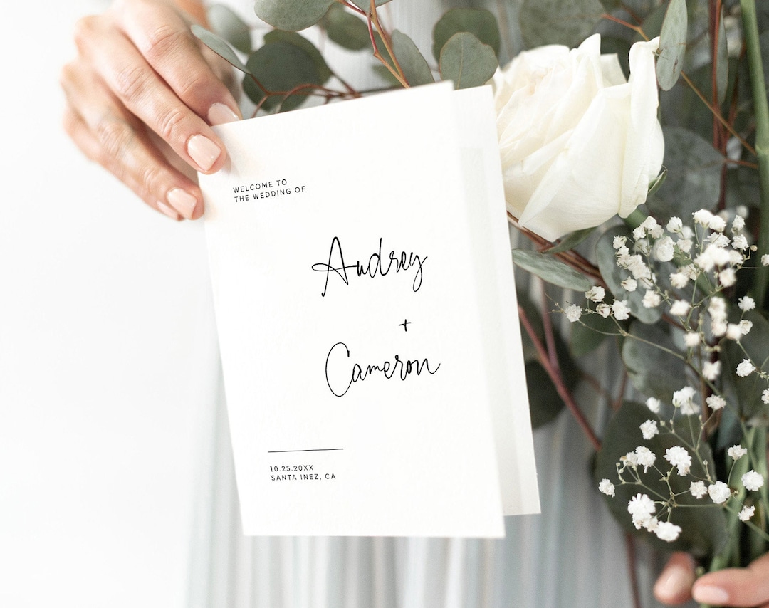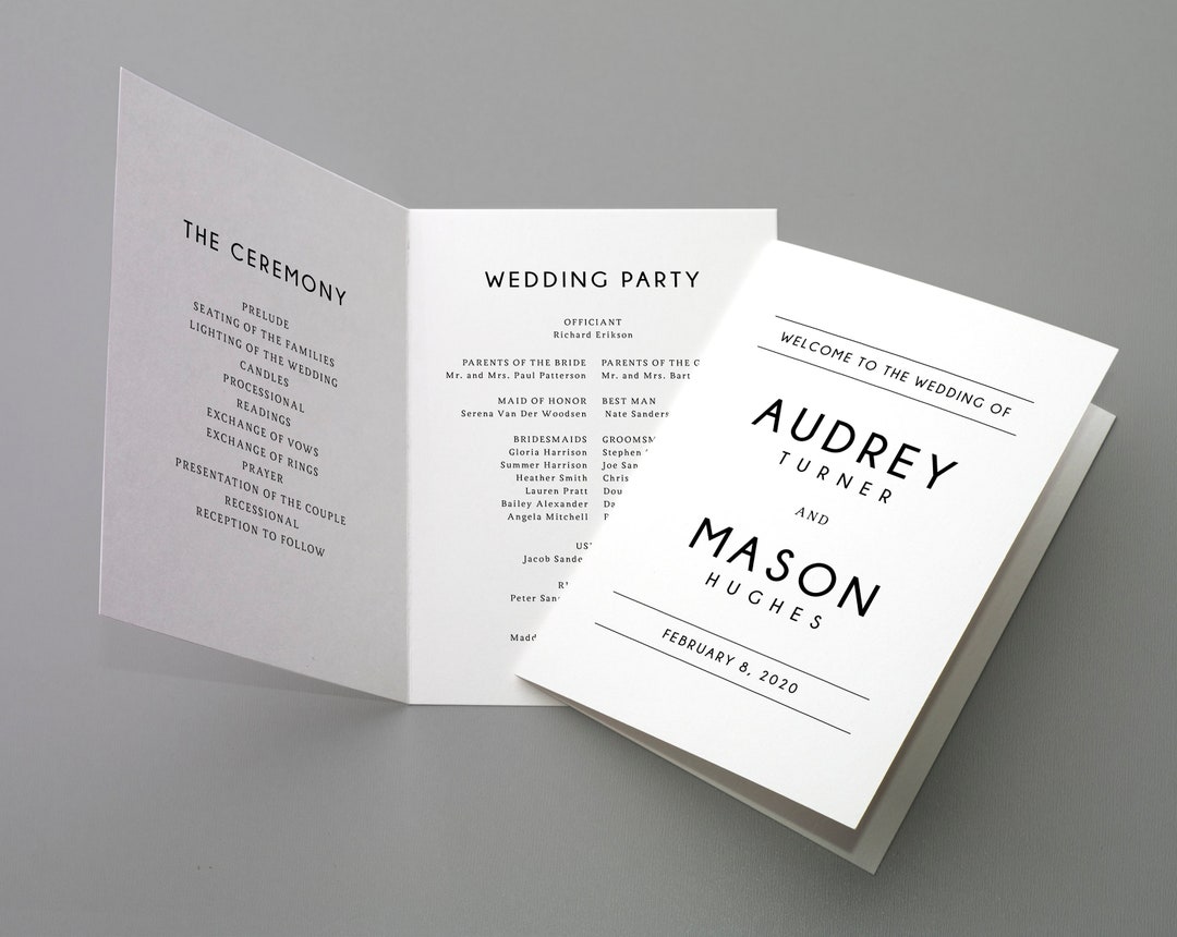 Minimalist Bi fold Wedding Program Template Printable Folded Etsy