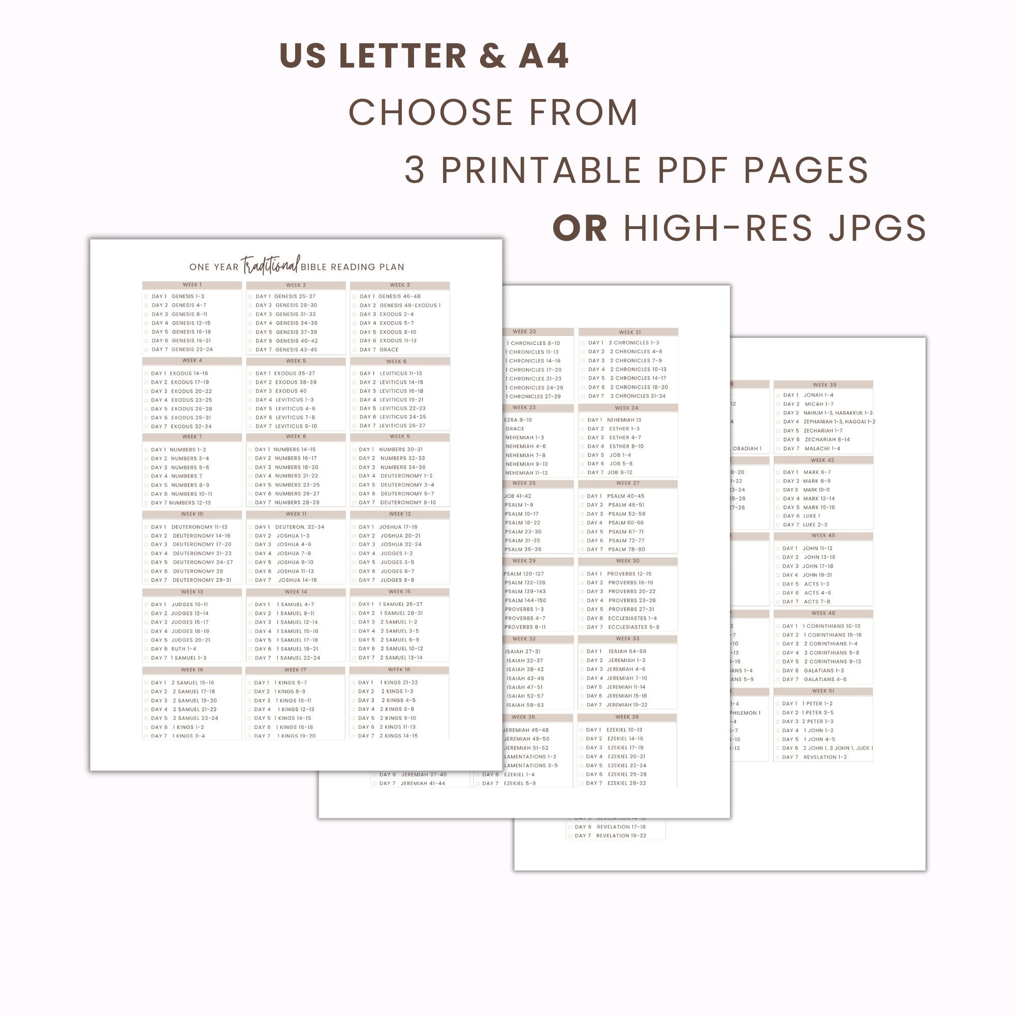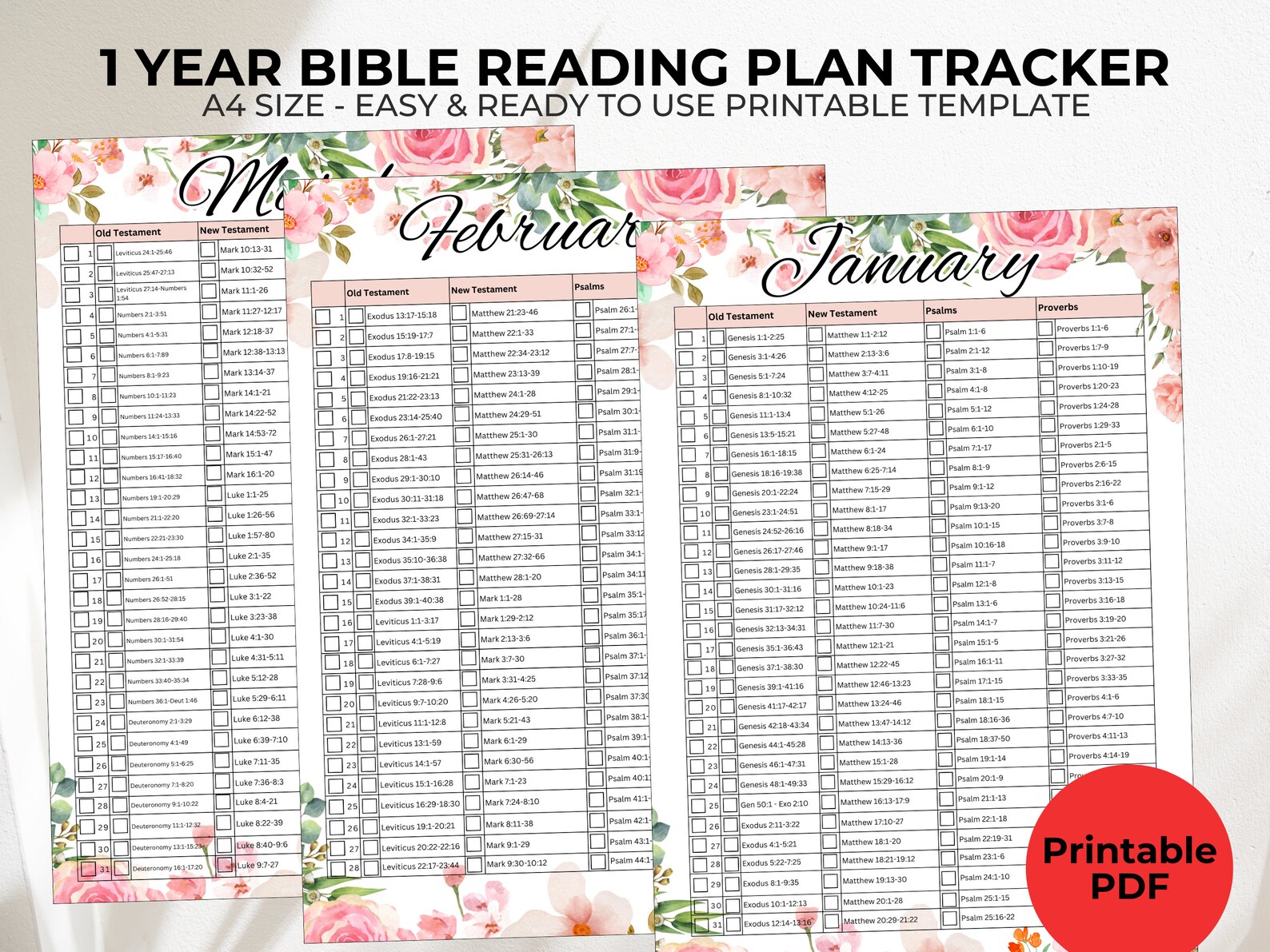 Printable Bible Reading Plan A4 PD One Year Bible Reading Tracker Etsy