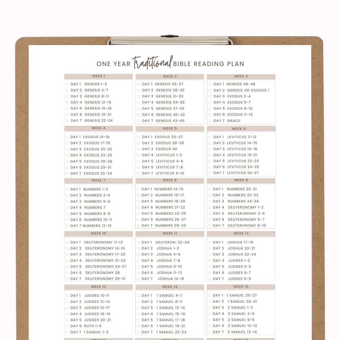 Read the Bible in a Year Chart Traditional Bible Reading Plan