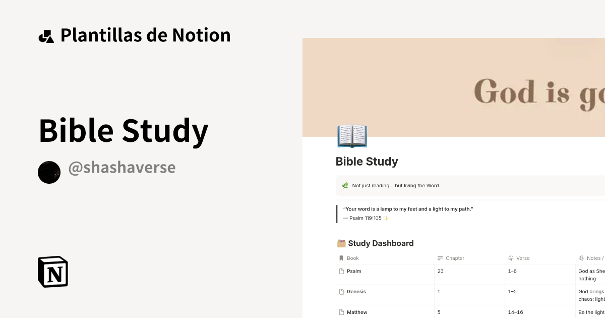 Bible Study Dashboard Template by Ches Planners Notion Marketplace