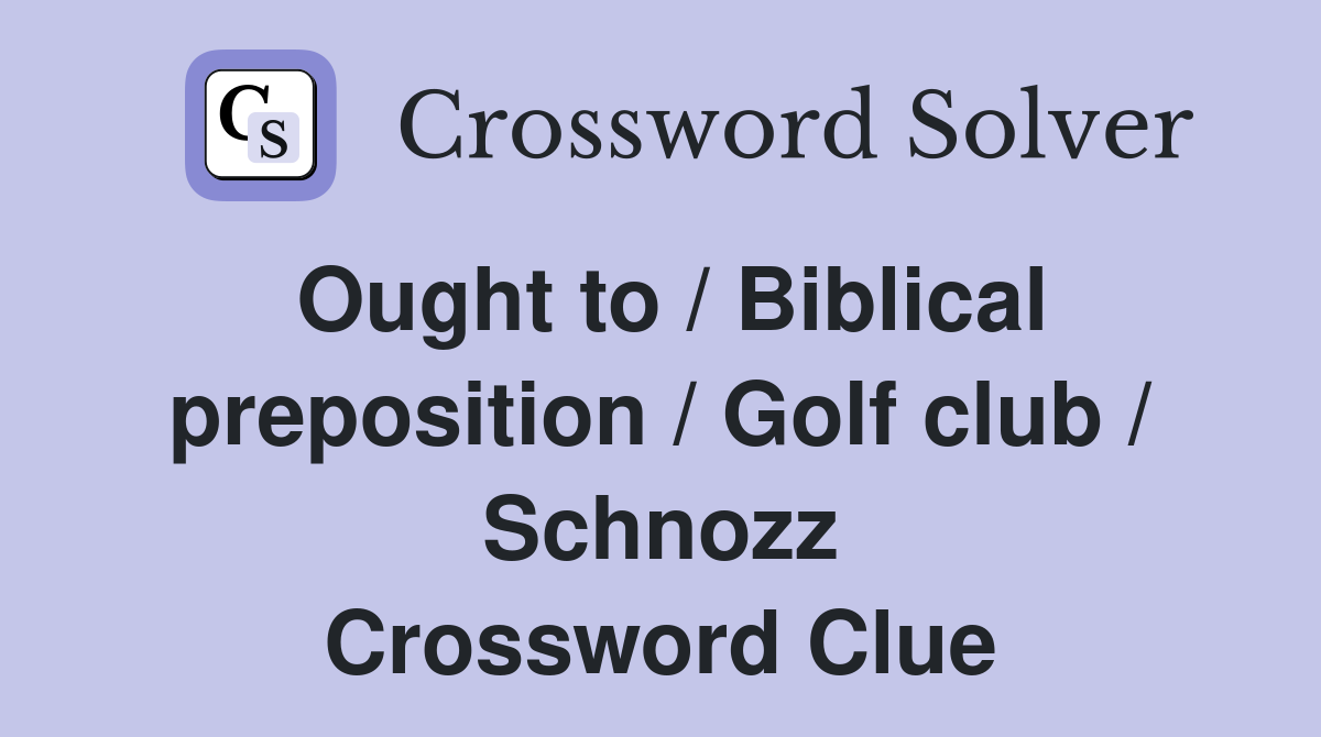 Ought to / Biblical preposition / Golf club / Schnozz Crossword Clue
