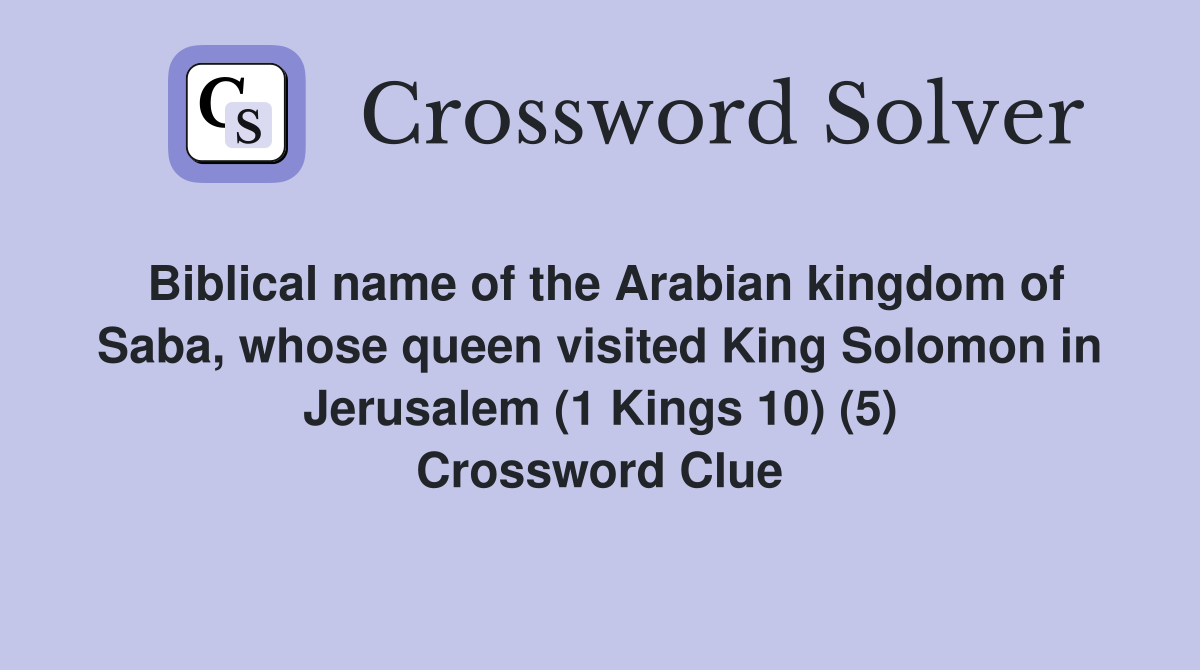 Biblical name of the Arabian kingdom of Saba whose queen visited King