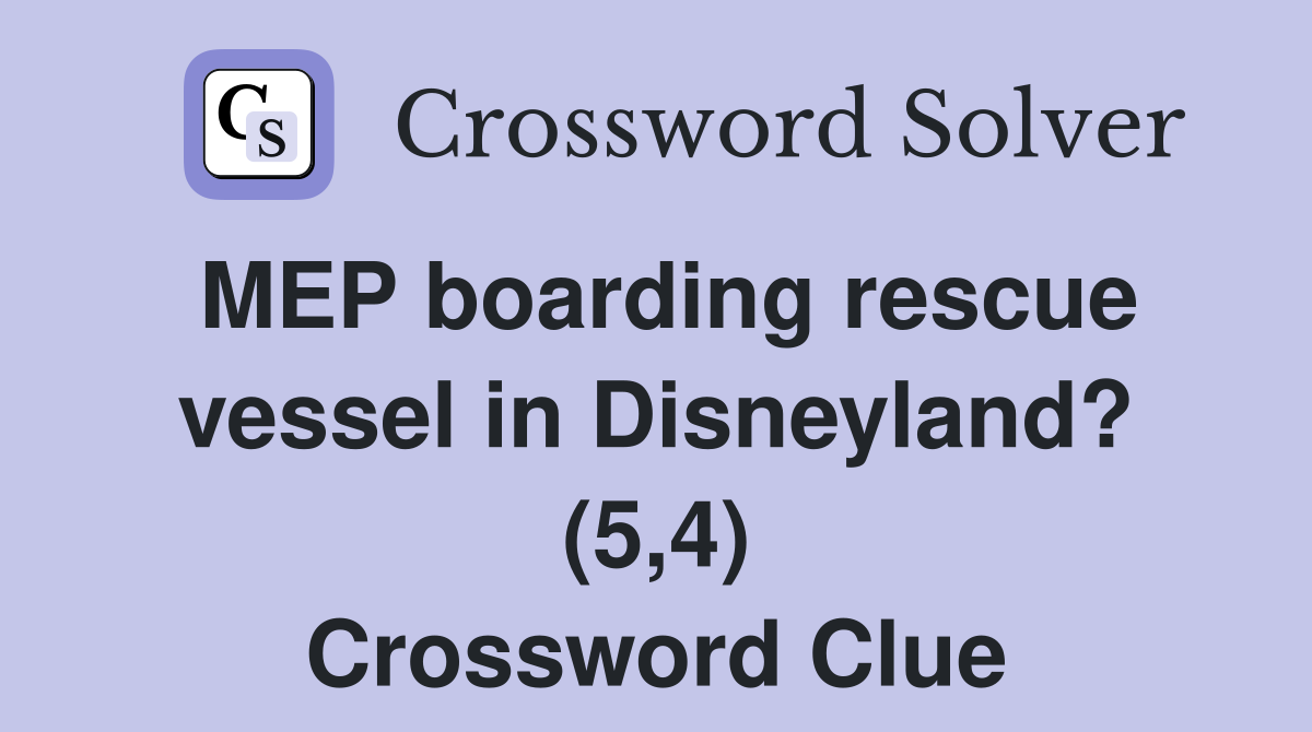 MEP boarding rescue vessel in Disneyland? (5 4) Crossword Clue