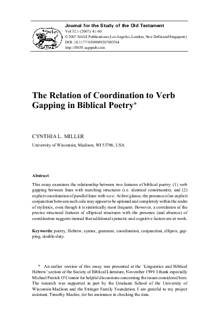 (PDF) The Relation of Coordination to Verb Gapping in Biblical Poetry
