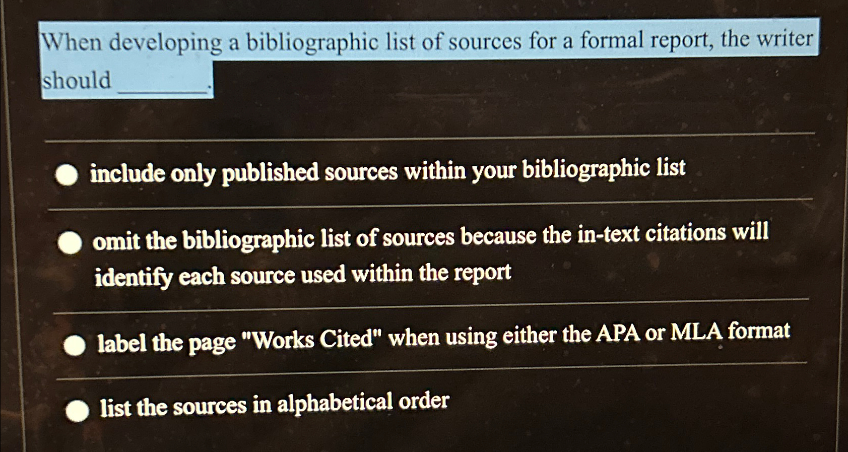 Solved When developing a bibliographic list of sources for a Chegg com