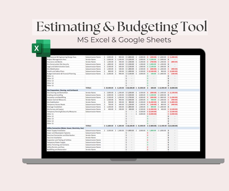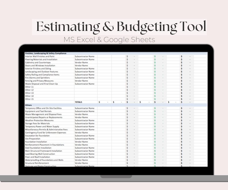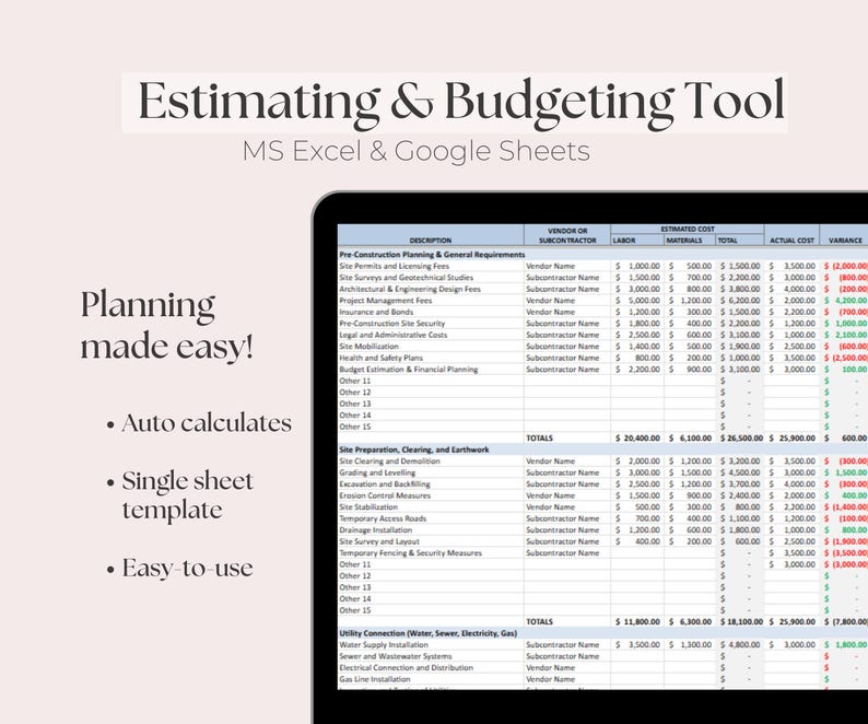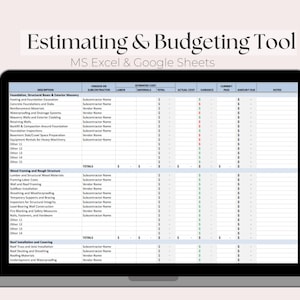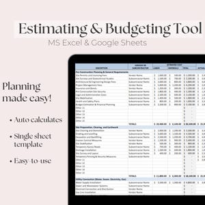 Construction Budget and Estimate Worksheet Etsy