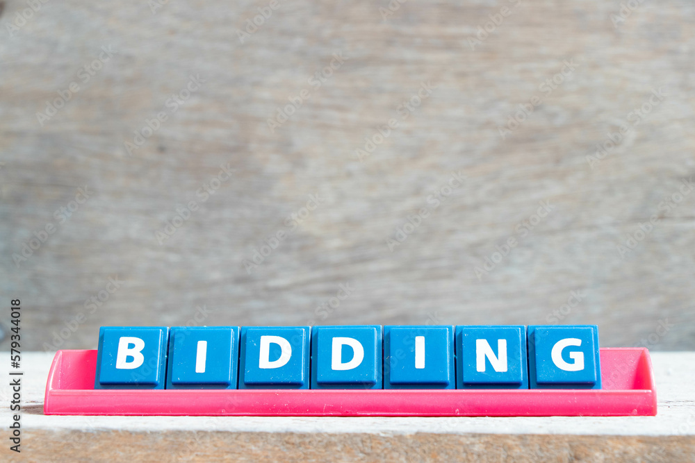 Tile alphabet letter with word bidding in red color rack on wood