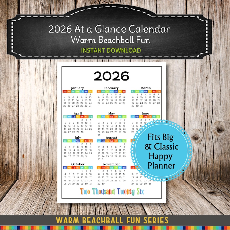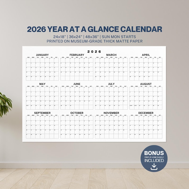 Giant Wall Calendar Year at A Glance DIGITAL DOWNLOAD Big