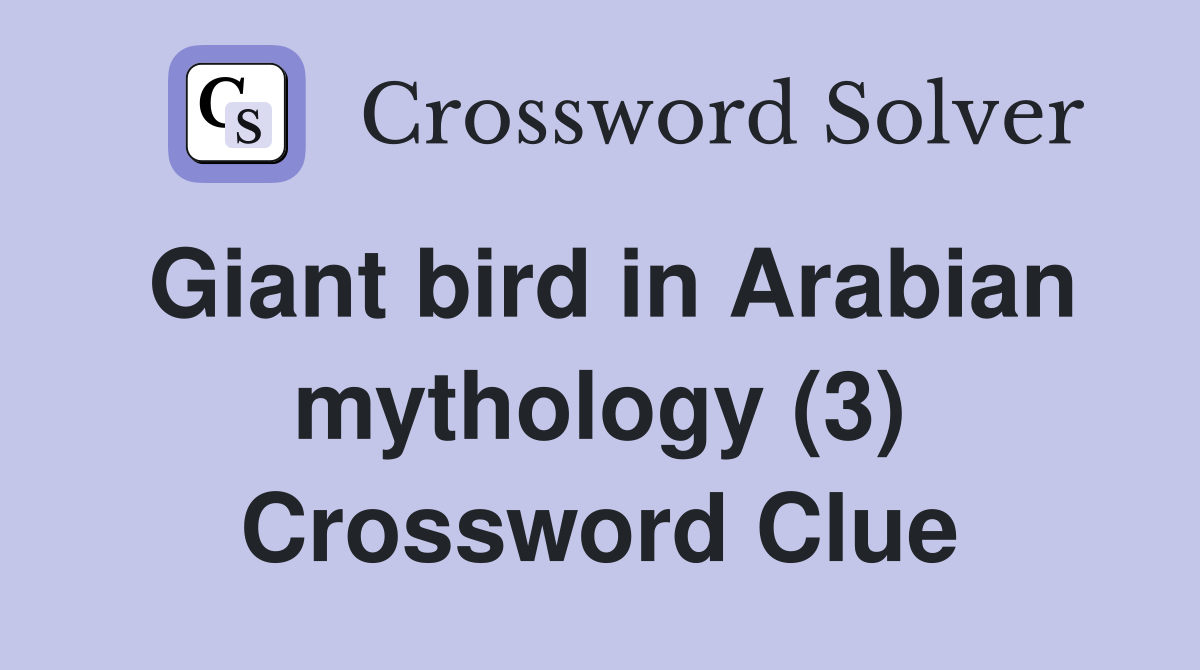Giant bird in Arabian mythology (3) Crossword Clue Answers