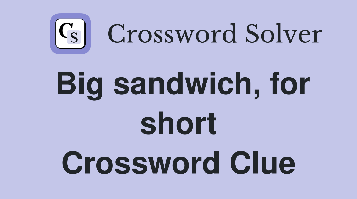 Big sandwich for short Crossword Clue Answers Crossword Solver