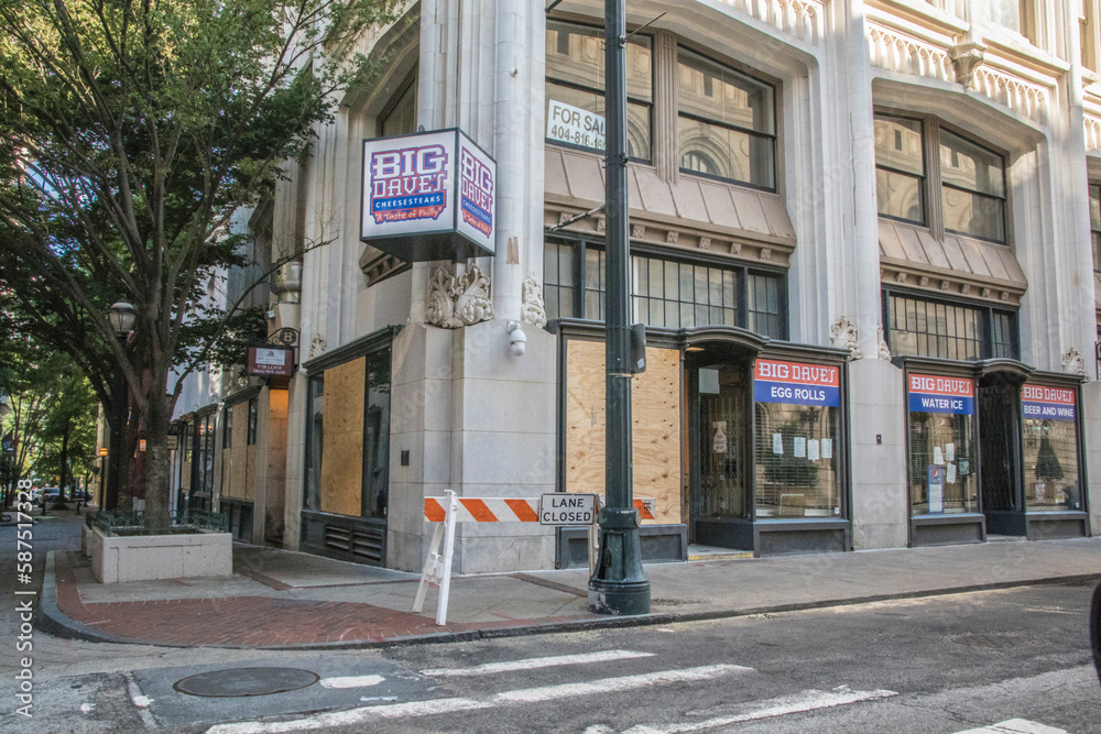 Downtown Atlanta Big Daves windows boarded up after riots the night