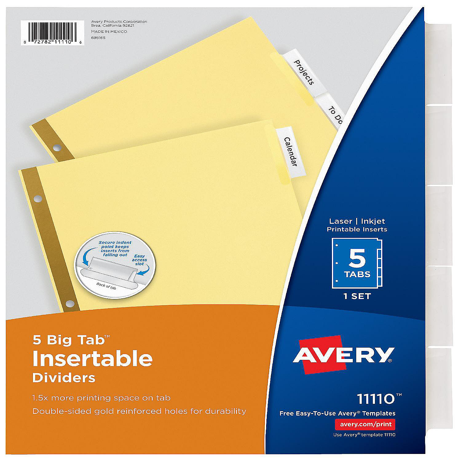 Avery 5 Tab Binder Dividers Insertable Clear Big Tabs 24 Sets 2 Pack