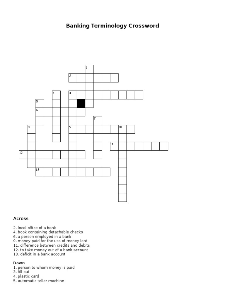 Business Banking Crossword Puzzle