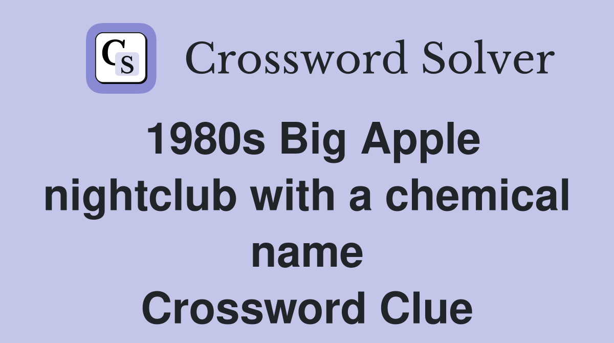1980s Big Apple nightclub with a chemical name Crossword Clue Answers