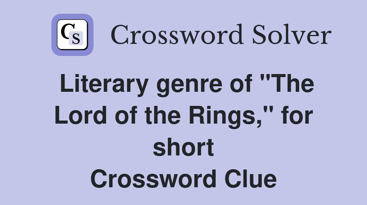 Literary genre of quot The Lord of the Rings quot for short Crossword Clue