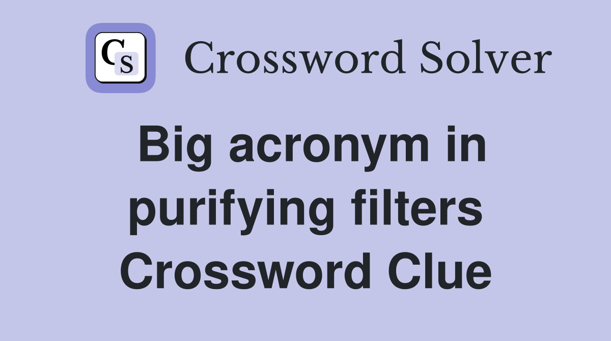 Big acronym in purifying filters Crossword Clue Answers Crossword