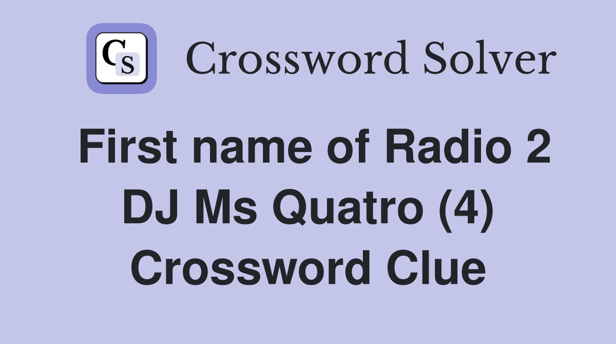 First name of Radio 2 DJ Ms Quatro (4) Crossword Clue Answers