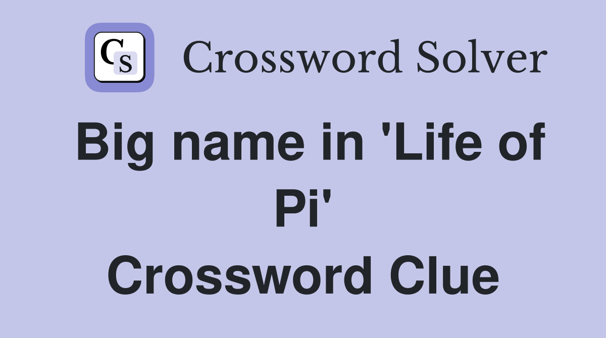 Big name in #39 Life of Pi #39 Crossword Clue Answers Crossword Solver