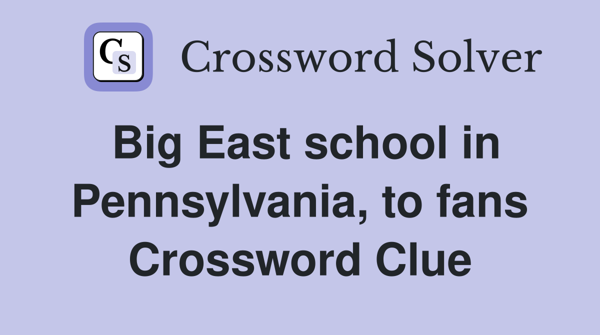 Big East school in Pennsylvania to fans Crossword Clue Answers