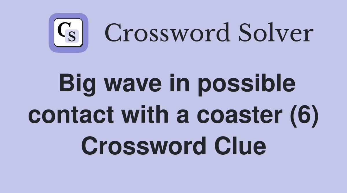 Big wave in possible contact with a coaster (6) Crossword Clue