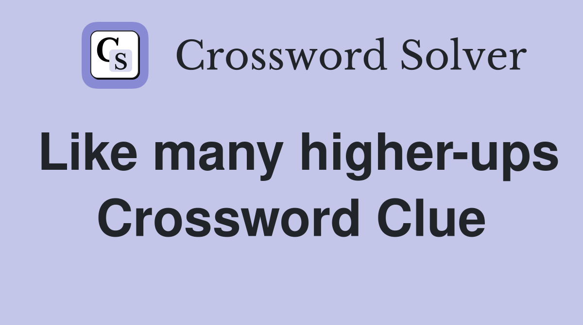 Like many higher ups Crossword Clue Answers Crossword Solver