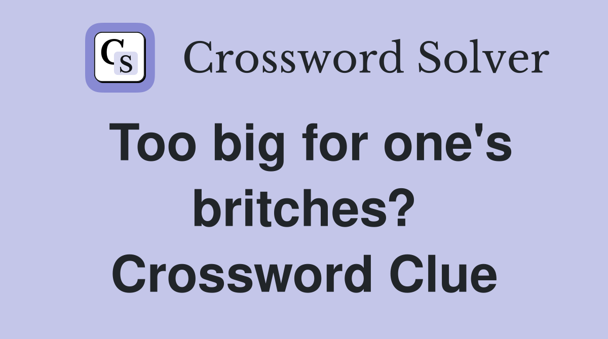 Too big for one s britches? Crossword Clue Answers Crossword Solver