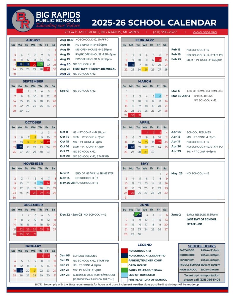 Big Rapids Public Schools Calendar