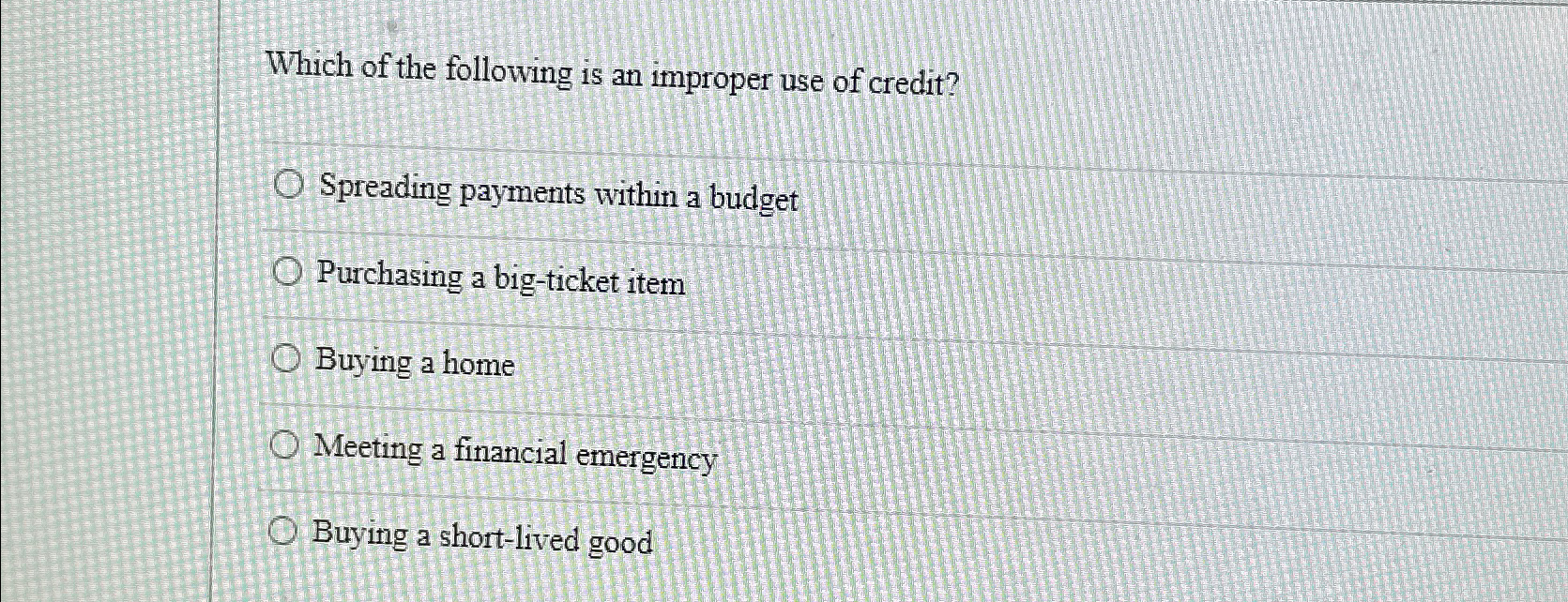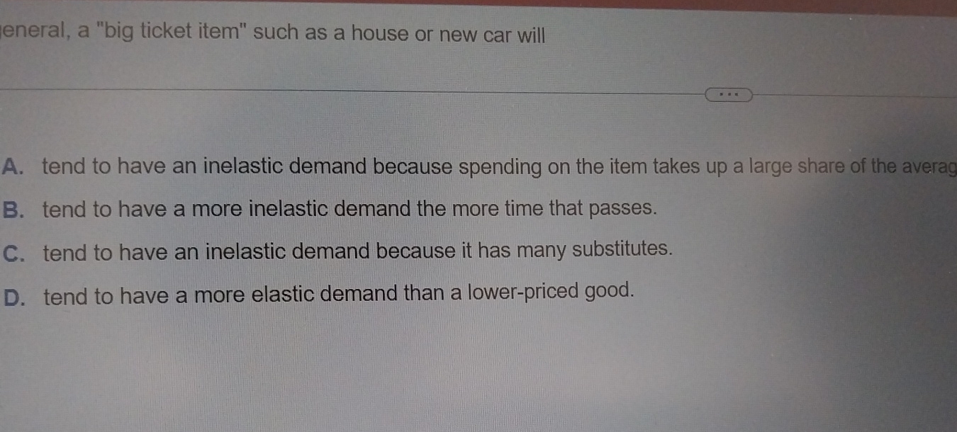 Solved eneral a quot big ticket item quot such as a house or new Chegg com