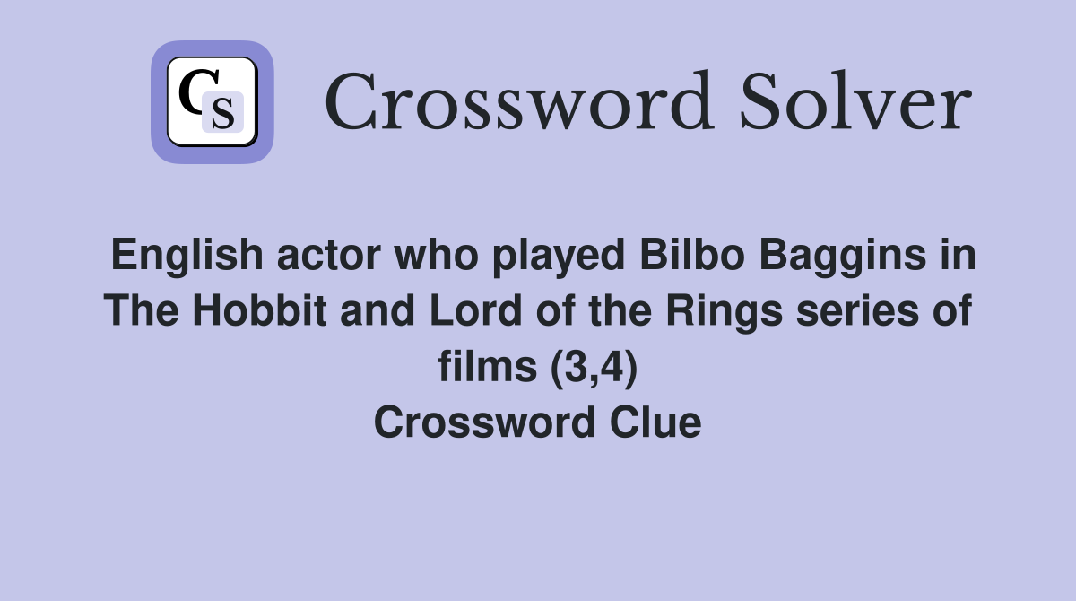 The Lord of the Rings actor who played Bilbo Baggins Crossword Clue