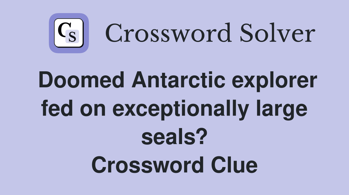 Doomed Antarctic explorer fed on exceptionally large seals? Crossword