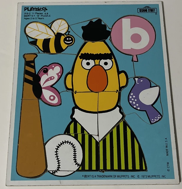 VINTAGE PLAYSKOOL MUPPETS Sesame Street Wooden toy Puzzle 11 Piece Bert