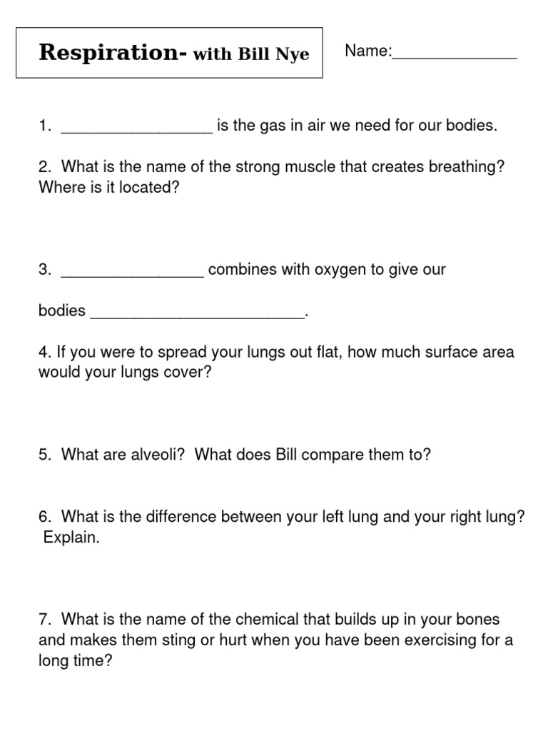 Bill Nye The Science Guy Respiration Worksheet Answers