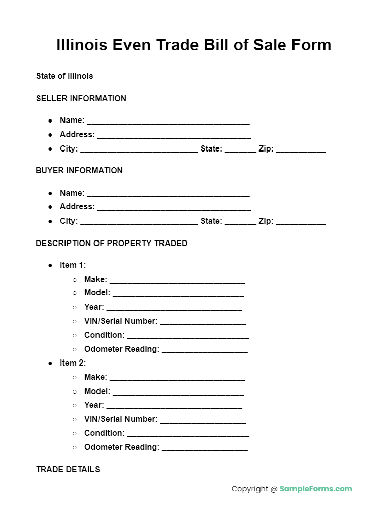 Fill Out Even Trade Bill of Sale (Form 1957) FormsPal