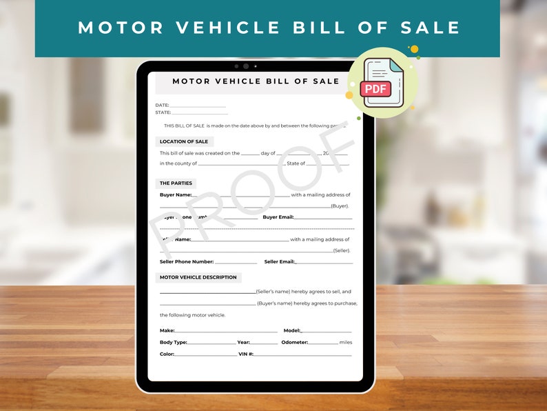 Bill of Sale Editable/fillable in WORD PDF Bill of Sale Template