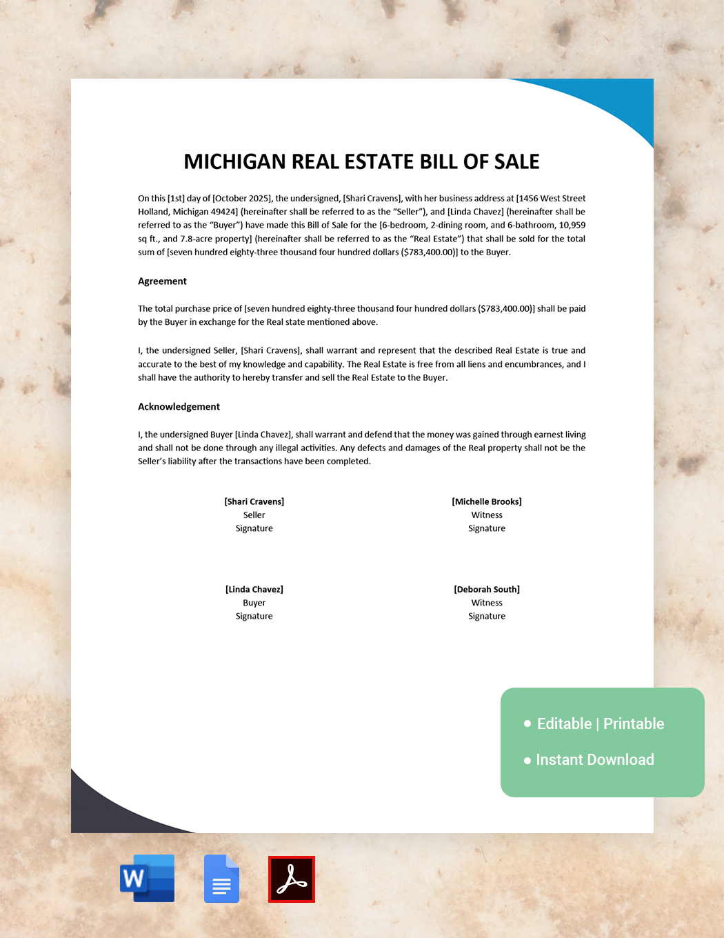 Michigan Real Estate Bill of Sale Template Google Docs Word PDF