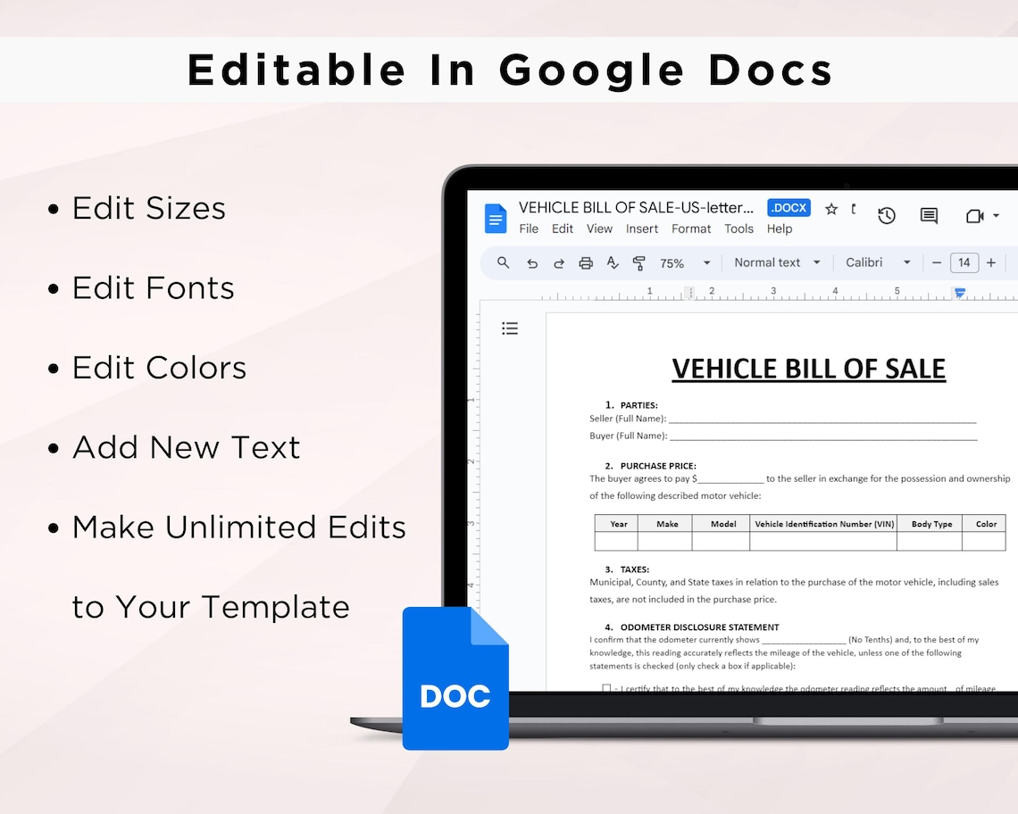 Free Motor Vehicle Bill of Sale Template to Edit Online