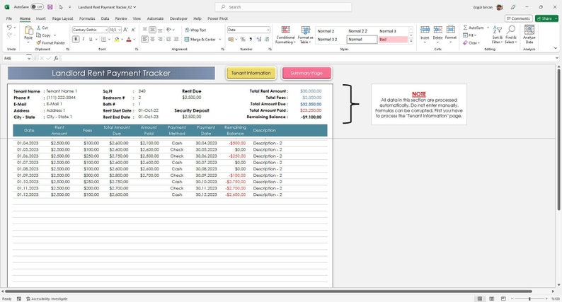 Landlord Rent Payment Tracker Excel Template (100 Properties) Etsy